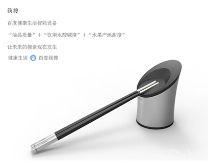 2014年9月3日,百度世界大會拉開帷幕,一度頗為神秘的“百度筷搜”再次被董事長李彥宏在主題演講中提及,但與以往不同,這次“筷搜”從概念變成了產(chǎn)品。在展示現(xiàn)場,這款便攜式健康生活智能設(shè)備賺足眼球,它看起來和一日三餐的普通筷子沒什么差別,卻擁有智能檢測地溝油、飲用水酸堿度和水果甜度、品種和產(chǎn)地等特色功能,可連接智能手機(jī),隨身攜帶使用。