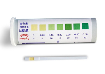 3. 過氧化值測試紙的反應計時視環(huán)境溫度而定,在表中規(guī)定的時間內(nèi)比色有效。