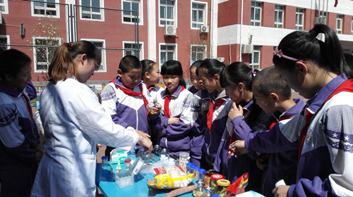校園食育展覽,是2015北京市教委創(chuàng)新人才培養(yǎng)項目之—,“由食物認識自我,探索世界”。本次展覽主要分為參觀食安知識海報和參觀食安快檢實驗兩部分,我們準備的5個實驗:亞硝酸鹽超標食品檢測、經(jīng)二氧化硫漂白食品的檢測、地溝油和安全食用油的鑒別、奶茶和橙汁的勾兌制作以及可樂含糖量和薯片含油量實驗,深受小學生們的喜愛。