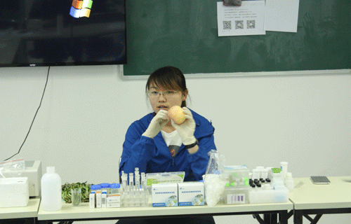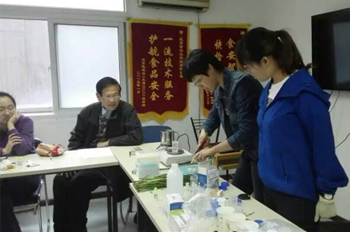 下午由東北農業大學食品工程專業碩士董鑫帶領學員動手實操體驗快檢,學員自己動手操作檢測了常見果蔬中的農藥殘留,牛奶中三聚氰胺檢測、泡椒鳳爪雙氧水檢測、冰糖二氧化硫檢測、速凍水餃亞硝酸鹽檢測,食用油脂、地溝油等的快速檢測等,實操課程學員顯現出了飽滿的熱情和認真細心的態度,課程結束學員還意猶未盡。