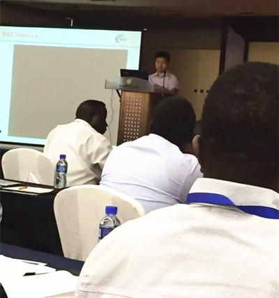 洽談會,首先是加納灌溉發(fā)展局副主任哈蒙弗朗西斯丹宣講加納在節(jié)能減排的現(xiàn)狀。