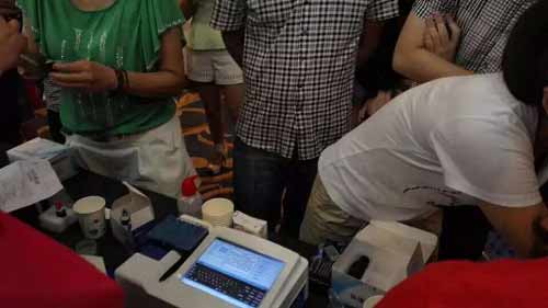 食藥監(jiān)局的工作人員認真學(xué)習(xí)快檢知識