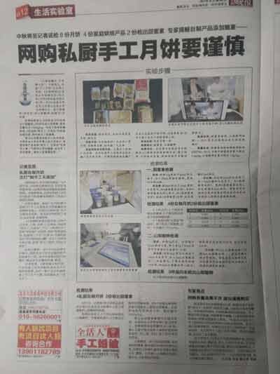 本次檢測樣品一共有八個:其中四個樣品分別來自不同地區的家庭烘焙坊,兩個是來自農貿市場包裝月餅,一個樣品是來自品牌,一個是現場手工制作。