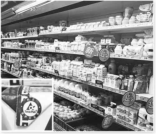 右上圖 利樂包裝讓高溫消毒的無(wú)菌奶占據(jù)壓倒性優(yōu)勢(shì),需要冷藏保存的低溫巴氏殺菌奶受到影響。而業(yè)界公認(rèn),低溫奶營(yíng)養(yǎng)價(jià)值更高,跟常溫奶占據(jù)的空間和熱鬧的促銷形成鮮明對(duì)比,品種很少。這是超市里的低溫奶專柜。經(jīng)濟(jì)日?qǐng)?bào)記者 佘 穎攝