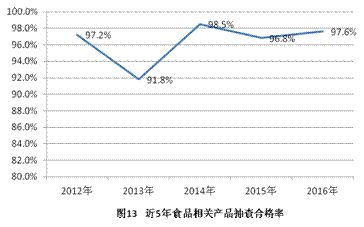 據了解,全年抽查了食品相關產品6種2413家企業生產的2919批次產品,抽查合格率為97.6%,比2015年提高了0.8個百分點。其中,接觸食品的消毒劑產品抽查合格率為100%;塑料材質-接觸乳制品的塑料包裝材料和容器、玻璃材質-接觸食品的容器2種產品抽查合格率均高于95%;紙材質-接觸食品的包裝材料和容器、橡膠材質-接觸食品的密封件、金屬材質-接觸烘焙食品的生產設備3種產品抽查合格率介于90%和95%之間。