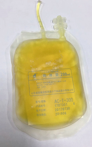 小萍體內置換出的血漿像豬油一樣 院方供圖
