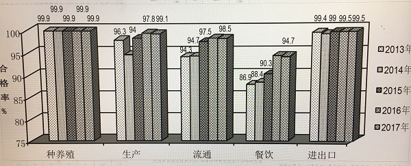 圖說:2013-2017年上海市各環節食品監督抽檢合格率情況 市食藥監供圖