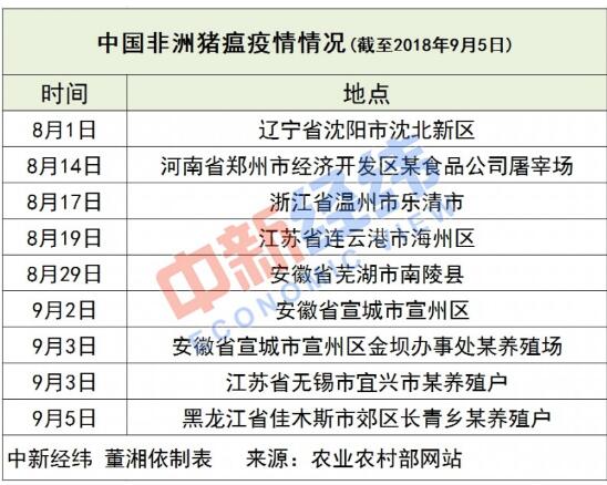 9月5日,據(jù)農(nóng)業(yè)農(nóng)村部網(wǎng)站消息,農(nóng)業(yè)農(nóng)村部新聞辦公室發(fā)布,黑龍江省佳木斯市郊區(qū)長青鄉(xiāng)發(fā)生生豬非洲豬瘟疫情。中新經(jīng)緯客戶端注意到,自今年8月初以來,中國已發(fā)生9起非洲豬瘟疫情。