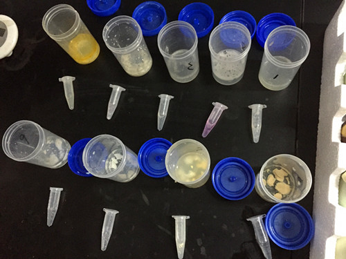 由于我們的咸鴨蛋還有沒熟的,因此取樣針對固液采取不同取樣方法,對于液體采用移液器進行取樣,對固態的直接稱重,為了保證取樣有代表性,我們都選取蛋黃和蛋清都采樣。